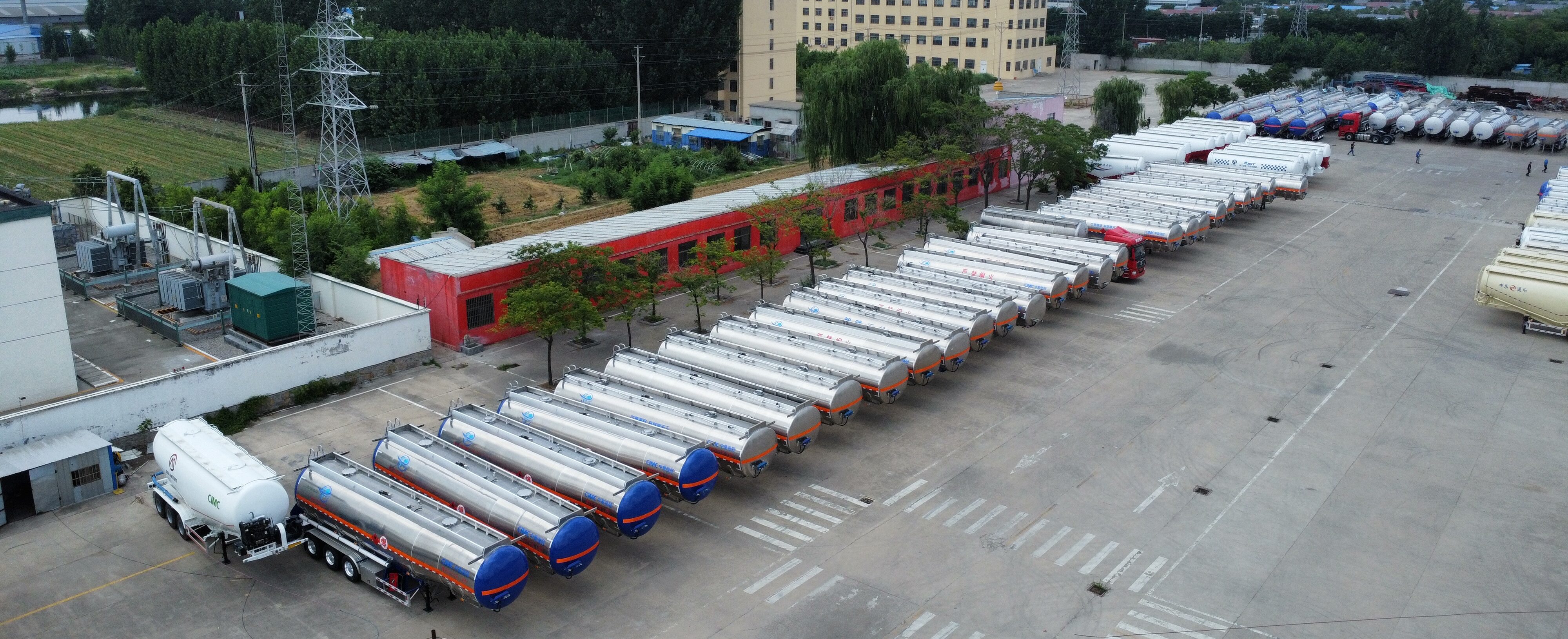 A batch of SINOHENG oil tank semi-trailers is ready to roll off the production line.