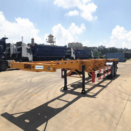 Efficient unloading function:Can automatically tip containers. Through a special hydraulic system, the container can be tilted to a certain angle so that the goods can be quickly unloaded by relying on their own gravity. For example, when transporting bulk cargo (such as sand, ore, etc.), the tipping angle can reach about 45 – 60 degrees to ensure that the goods can smoothly slide out of the container.