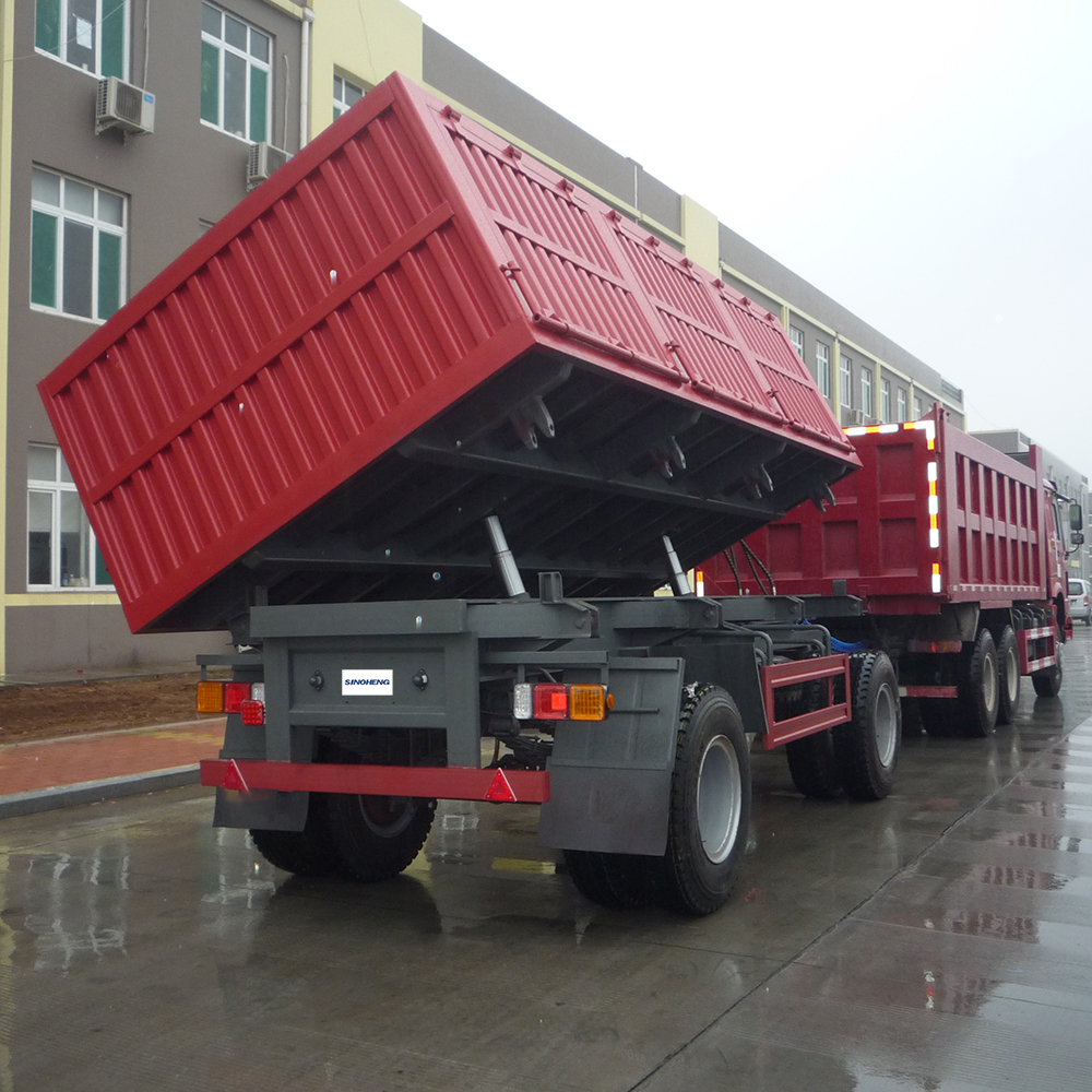 The front refers to the front of the dump semi-trailer, which is responsible for pulling and controlling the whole vehicle. The locomotive usually consists of the cab, engine, steering system and suspension system.The cab provides the driver with space to work and rest, the engine provides power, the steering system controls the steering wheel and steering mechanism, and the suspension system is used to mitigate road vibrations.