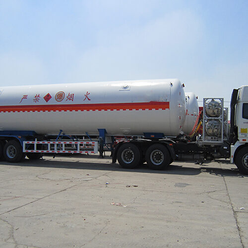 Generally, a metal double-cylinder vacuum fiber insulation structure is used. At the rear, an operation box is set up. The main operation valves are all installed in the operation box for centralized control. The operation box has three-sided opening for convenient operation and maintenance. At the front, there is a pressure gauge in front of the vehicle, which is convenient for operators to observe the pressure inside the inner cylinder nearby in the cab. Platforms are set on both sides to facilitate blocking mud splashing. A hose box is set on the platform, and a metal hose for infusion (steam) is placed inside the box. The hose is a stainless steel bellows.Traction car pay attention to the traction car chassis. The semi-trailer frame adopts a split double-axle semi-trailer frame, which is customized by the trailer factory according to requirements.Generally, the overall dimensions of the whole vehicle are length × width × height Technologies 14500mmx2500mmx3900mm, which requires compliance with the standard provisions of GB7258 “Technical Conditions for Motor Vehicle Operation Safety”. There are safety protection railings on both sides of the whole vehicle.Natural gas high-pressure gas long-tube hydraulic gas filling semi-trailer: It is composed of a bottle group skid-mounted vehicle and steel cylinders.