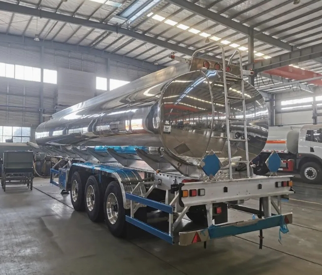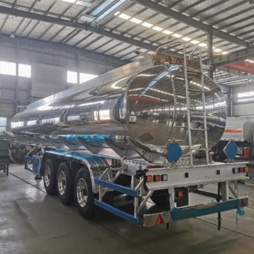 A semi-trailer tanker is a type of tanker truck in which the towing head is connected to the trailer part. Compared with ordinary single-unit tanker trucks, semi-trailer tankers can effectively improve transportation efficiency when transporting oil. Under the condition of the same tonnage, it can reduce transportation costs and save fuel consumption. It is mainly composed of the tank body, vehicle frame, traction device, supporting device, electrical system, running system, protective device, accessories and so on.
