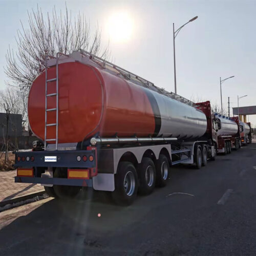 A semi-trailer tanker is a type of tanker truck in which the towing head is connected to the trailer part. Compared with ordinary single-unit tanker trucks, semi-trailer tankers can effectively improve transportation efficiency when transporting oil. Under the condition of the same tonnage, it can reduce transportation costs and save fuel consumption. It is mainly composed of the tank body, vehicle frame, traction device, supporting device, electrical system, running system, protective device, accessories and so on.